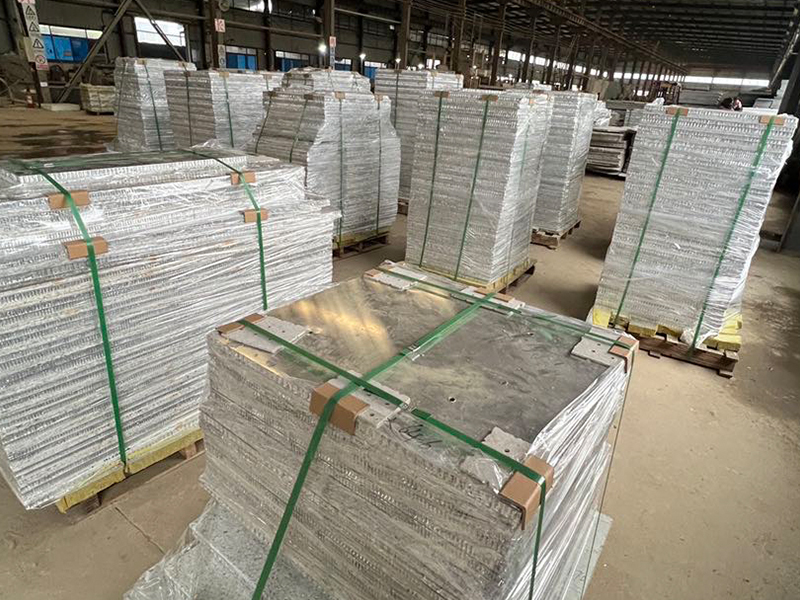公司開發部經過幾年的開發研究,將超薄天然花崗巖,砂巖,洞石,大理石瓷磚等與保溫材料板、鋁合金蜂窩板相復合,形成了不破裂、安全、保溫的復合板并用之于外墻裝修,解決了此類材料易破裂、脫落等不安全的隱患,深得社會好評。